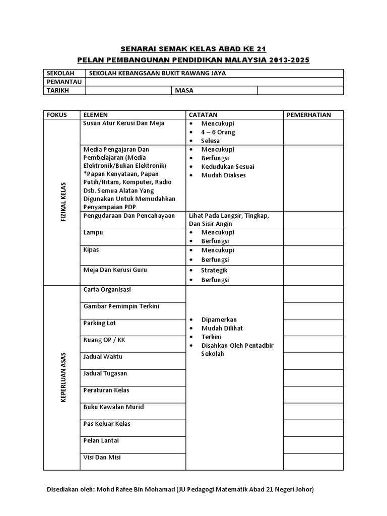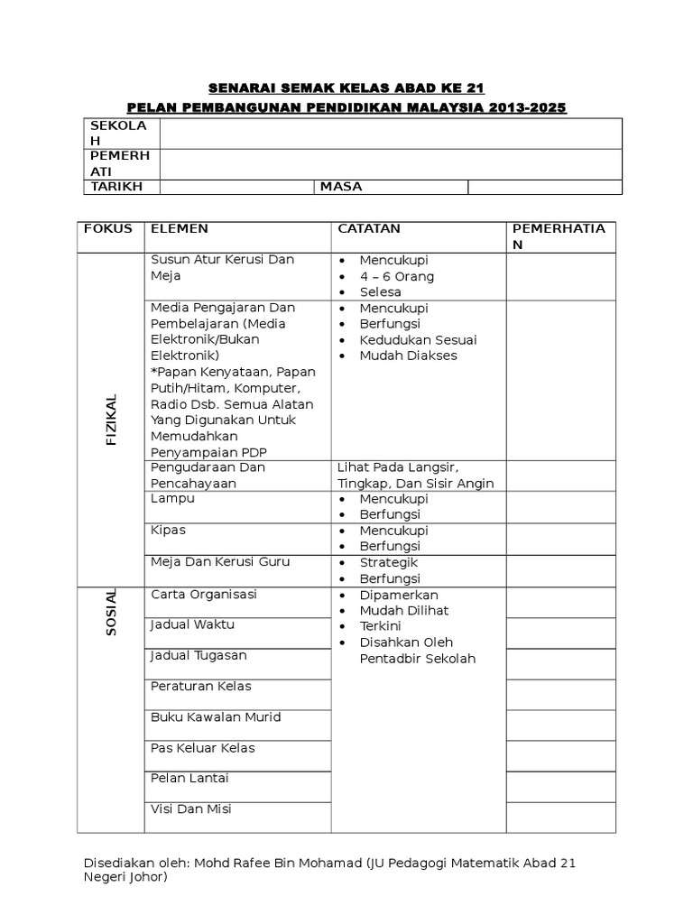 Senarai Semak Bilik Darjah Pembelajaran Abad 21 Pdf