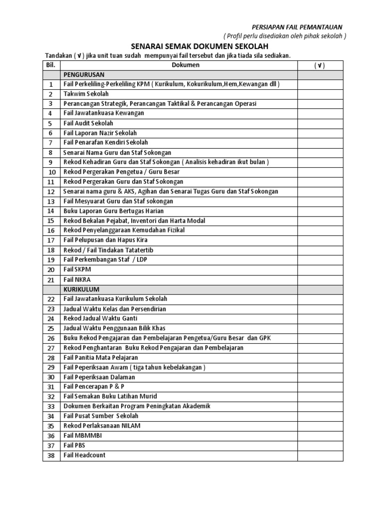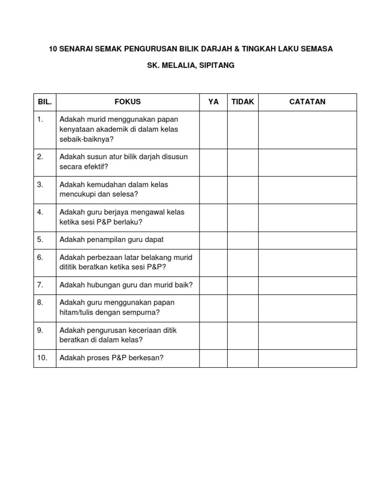 10 Senarai Semak Pengurusan Bilik Darjah Pdf