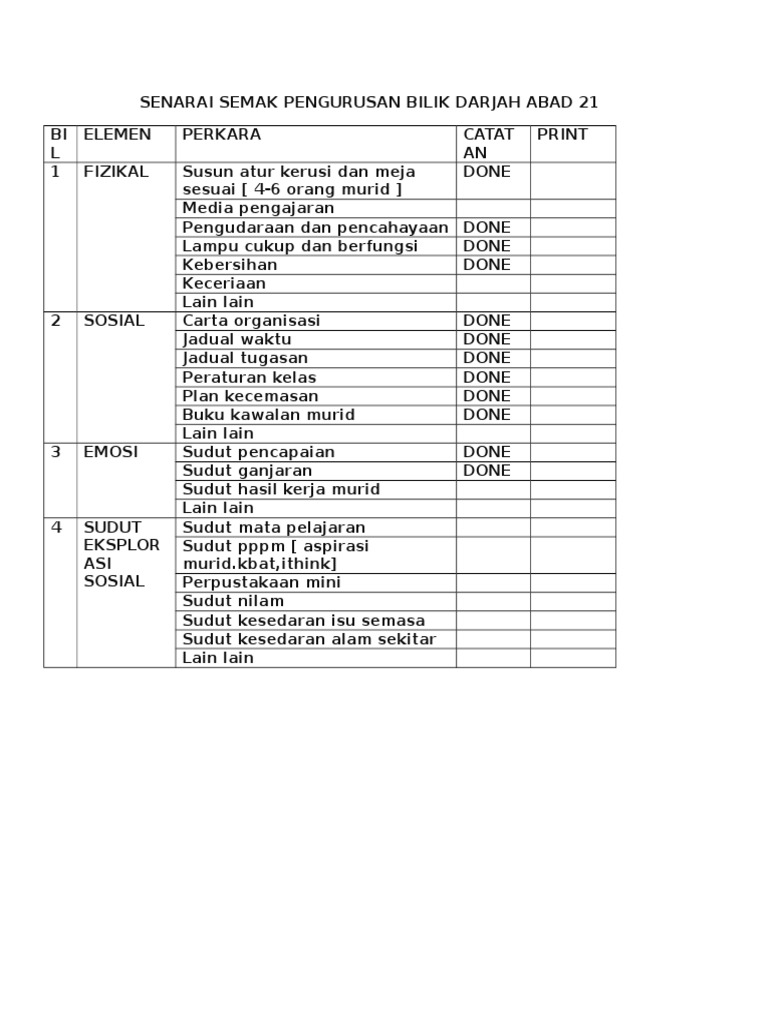 Senarai Semak Pengurusan Bilik Darjah Abad 21 Pdf